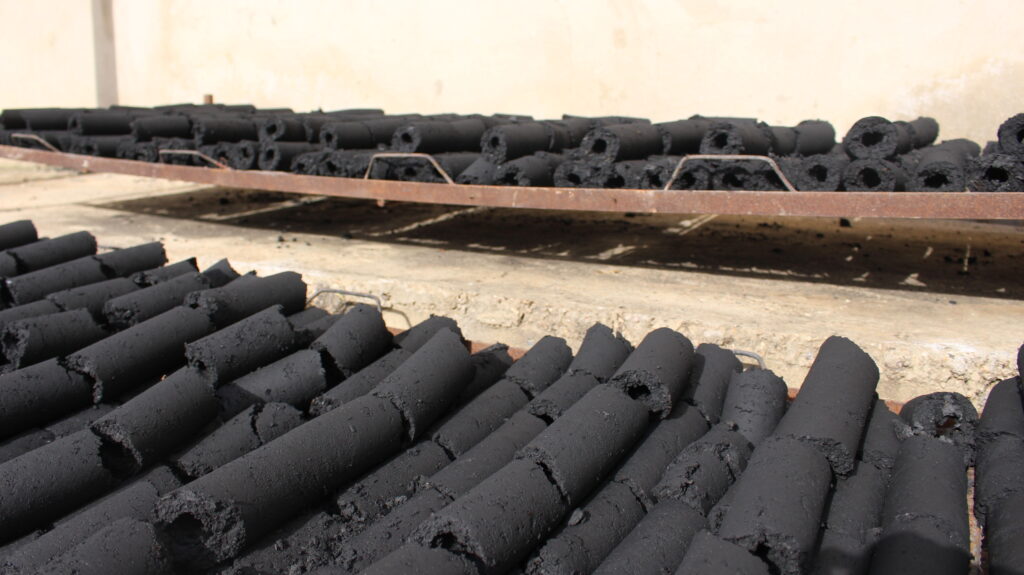 Grazie al progetto hanno potuto comprare una macchina per recuperare tutte le materie prime ma anche per poter commercializzare il prodotto alla clientela in aumento. Il carbone vegetale non solo risparmia le foreste che devono essere abbattute per fabbricare quello a base di legno, ma è anche più sostenibile a livello di prezzo. “Vendere un prodotto più economico aiuta le famiglie ad abbassare i costi, siamo felici di aver creato un carbone che può aiutare l’economia famigliare” ci racconta Dicke con una voce sottile piena di orgoglio.