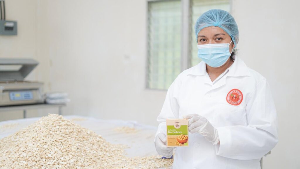 Dalle galline agli anacardi, un progetto che ha coinvolto produttorə con diverse specialità ma con la stessa visione della sostenibilità ambientale, del ruolo centrale delle donne e dell’importanza di costruire anche nelle zone rurali opportunità lavorative dignitose. “La nostra cooperativa è composta da 100 donne, ci occupiamo di trasformazione di anacardi biologici, lavoriamo il seme del frutto di questo bellissimo albero da anni. Adesso però abbiamo delle confezioni grazie a cui lo vendiamo con una bella presentazione e abbiamo iniziato ad esportare fino a Europa, è una grande soddisfazione sapere che il nostro lavoro arriva così lontano.” Ci racconta Maria Antonia della “Sureñita”.